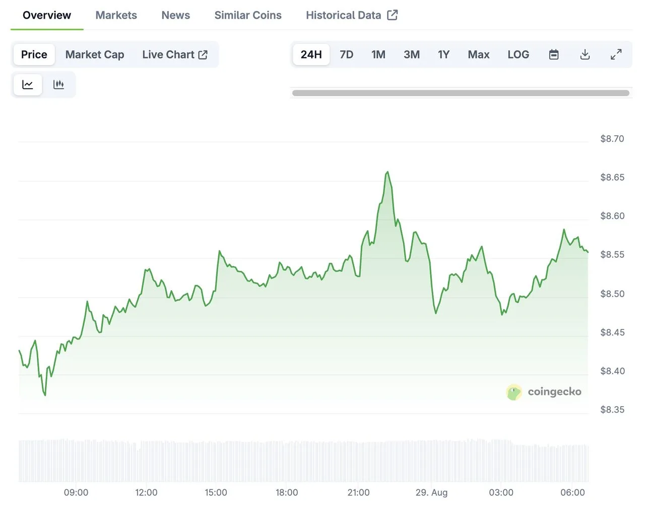 Giá TRUMP đã phục hồi từ mức thấp nhất trong ngày khoảng 8,07 đô la lên khoảng 8,56 đô la sau thông tin về việc nộp đơn xin ETF Trump Coin spot của Canary Capital. Tuy nhiên, memecoin này, với vốn hoá pha loãng hoàn toàn (FDV) khoảng 8,3 tỷ đô la, đã giảm hơn 5% trong bảy ngày qua trong bối cảnh thị trường tiền điện tử đang điều chỉnh.