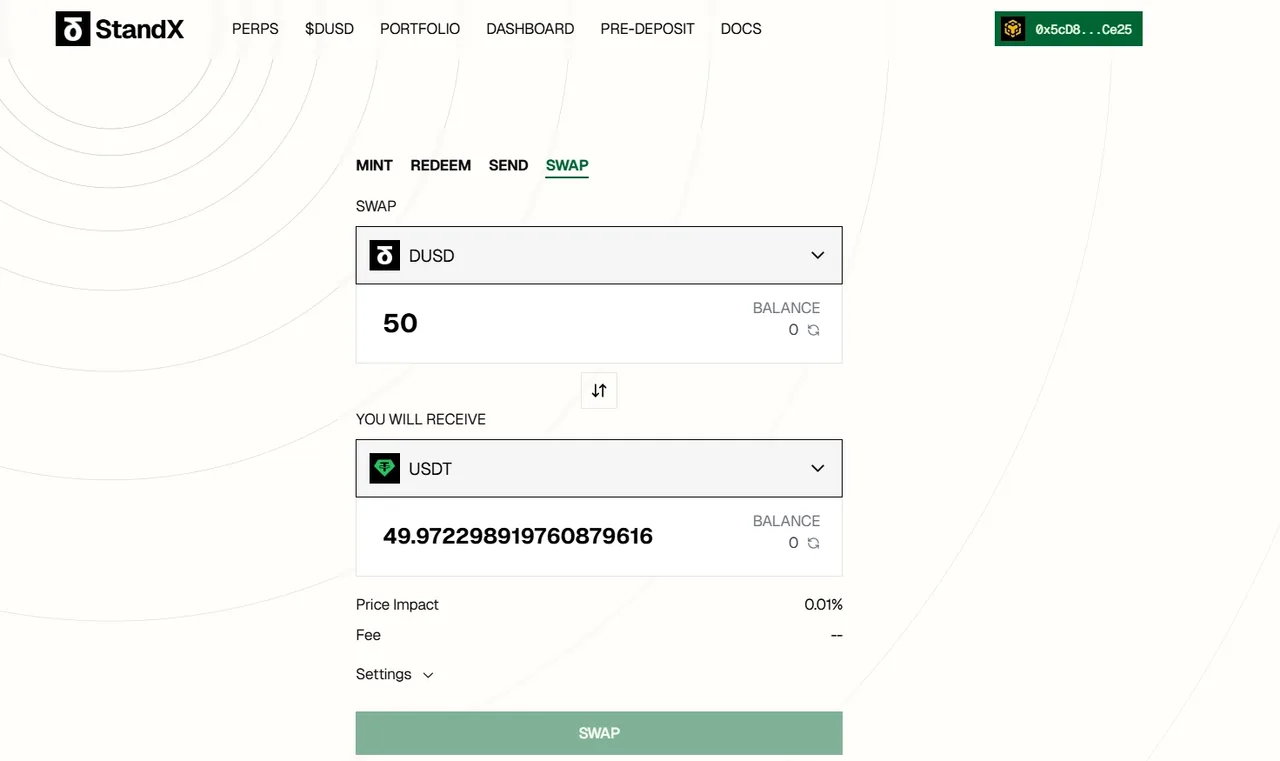 Bước 5: Tích thêm điểm khi swap trên StandX